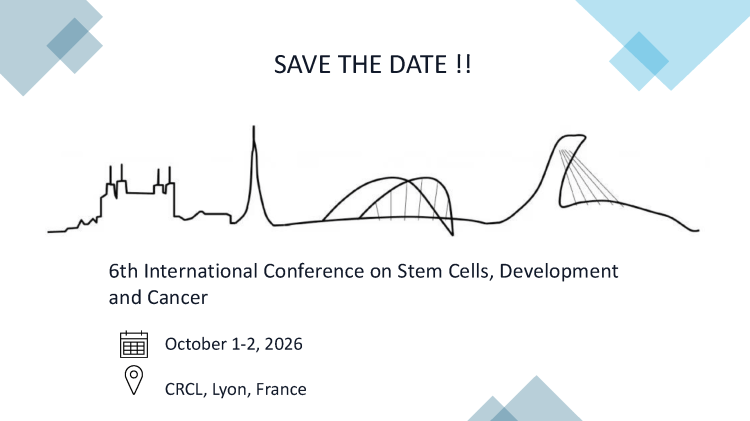 Save the date ! Join the 6th conference on « Stem Cells Development and Cancer » This meeting is jointly held every two years in Lyon, France and Montréal, Canada. Next meeting in Lyon on October 1-2, 2026. Check all details on the Meeting’s page